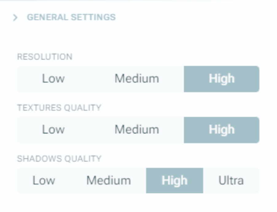 Poznámka: Nastavenia grafiky nemajú vplyv na kvalitu renderovania. Sú to výlučne nastavenia prehliadača, ktoré ovplyvňujú, ako projekt vyzerá na obrazovke.