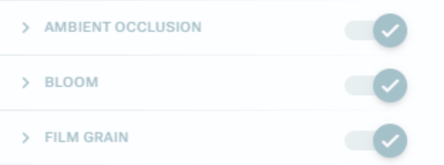 Mnoho efektov, ako sú Bloom alebo Ambient Occlusion (Oklúzia okolia), sa dá zapnúť alebo vypnúť, aby ste dosiahli požadovaný výsledok.