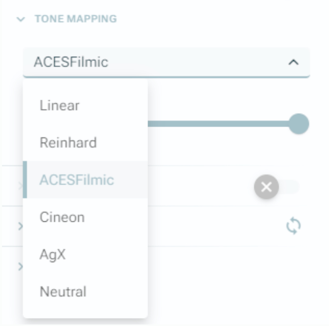 Odporúča sa použiť nastavenie ACESFilmic, ktoré zaisťuje vyvážené zobrazenie jasu a kontrastu.