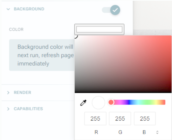 Umožňuje zmeniť farbu pozadia za scénou.
